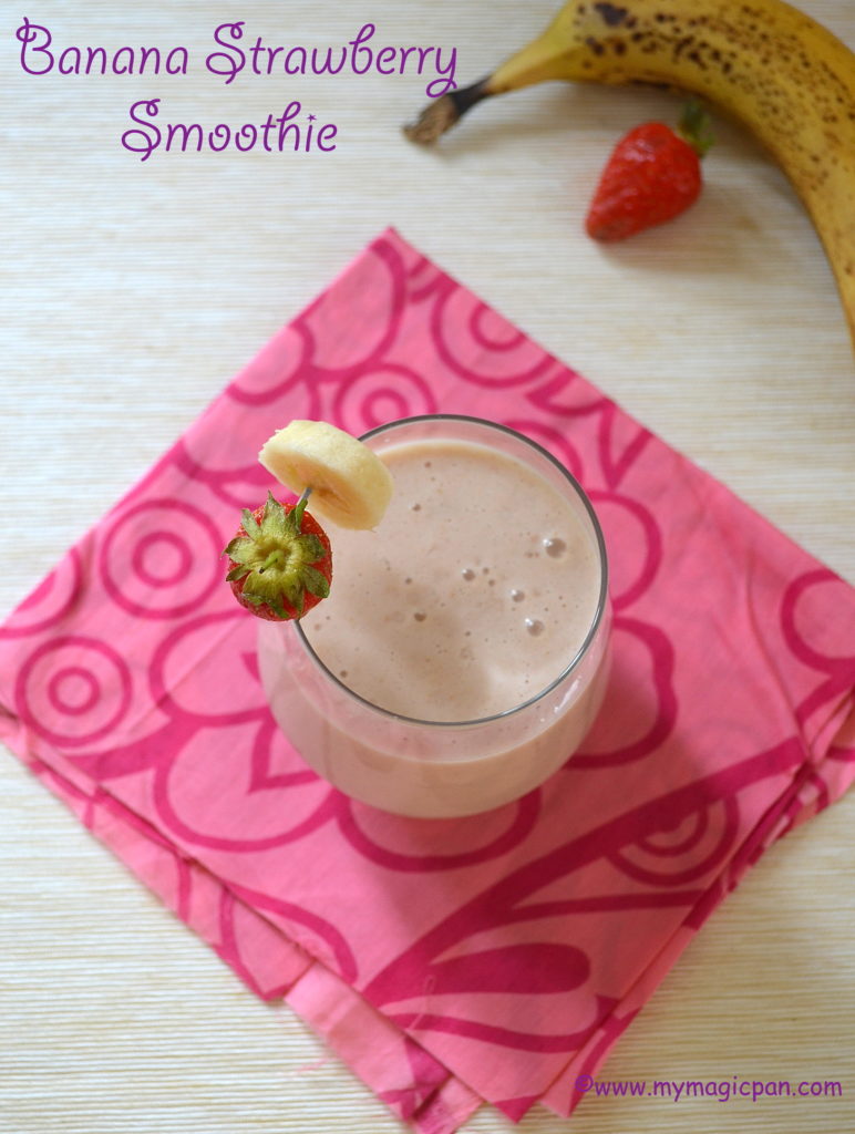 Smoothies are always welcome at home. This Banana Smoothie recipes in 2 ways is a simple yet filling drink each. Perfect to kick start the mornings or after a workout. Here I have given options with Banana + Strawberry & Banana + Peaches. Do use the search feature and look out for more options with Banana if u like. These smoothies need just 5 mins to make. All u need to do is whip up some ingredients and serve. There are “n” number of variations that u can make it with. Do check out the quick video. 🙂 This is my favourite SMOOTHIE